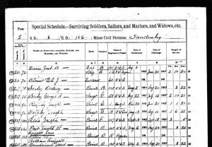 The 1890 veterans schedules provided spaces for the following information: